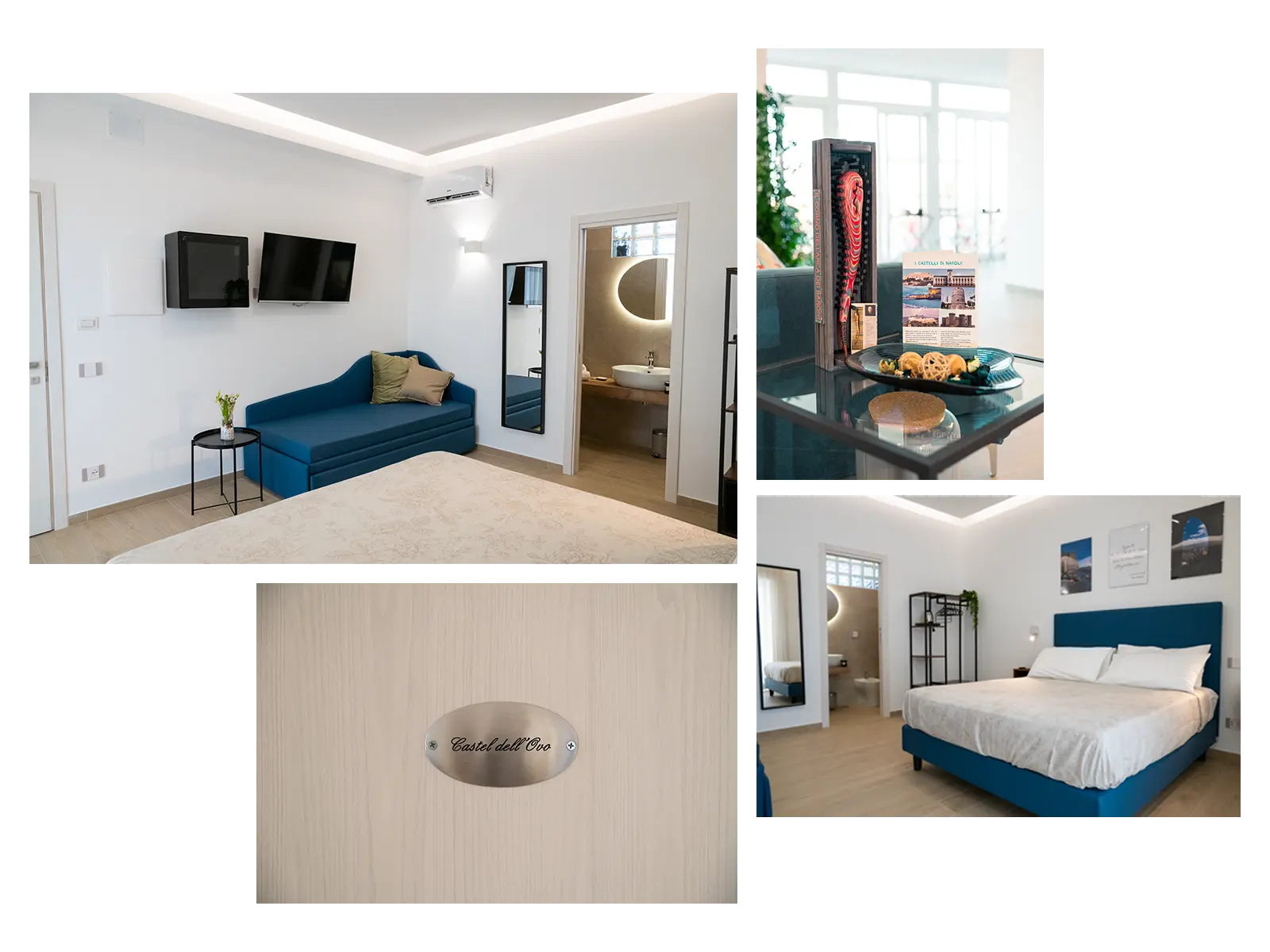 La passione che ci ha guidato nel crearla, ci spinge ad avere cura per ogni dettaglio con l’unico scopo di farvi vivere un soggiorno esclusivo alla scoperta di questa meravigliosa e storica città. Di fatti, i nomi delle nostre camere sono dedicati ai suoi imponenti castelli, in quanto Napoli ne vanta ben sette nel suo perimetro, essendo questa solo una delle cose che la rende unica al mondo. In ciascuna camera potrete scoprirne le leggende, che stuzzicheranno la vostra curiosità.