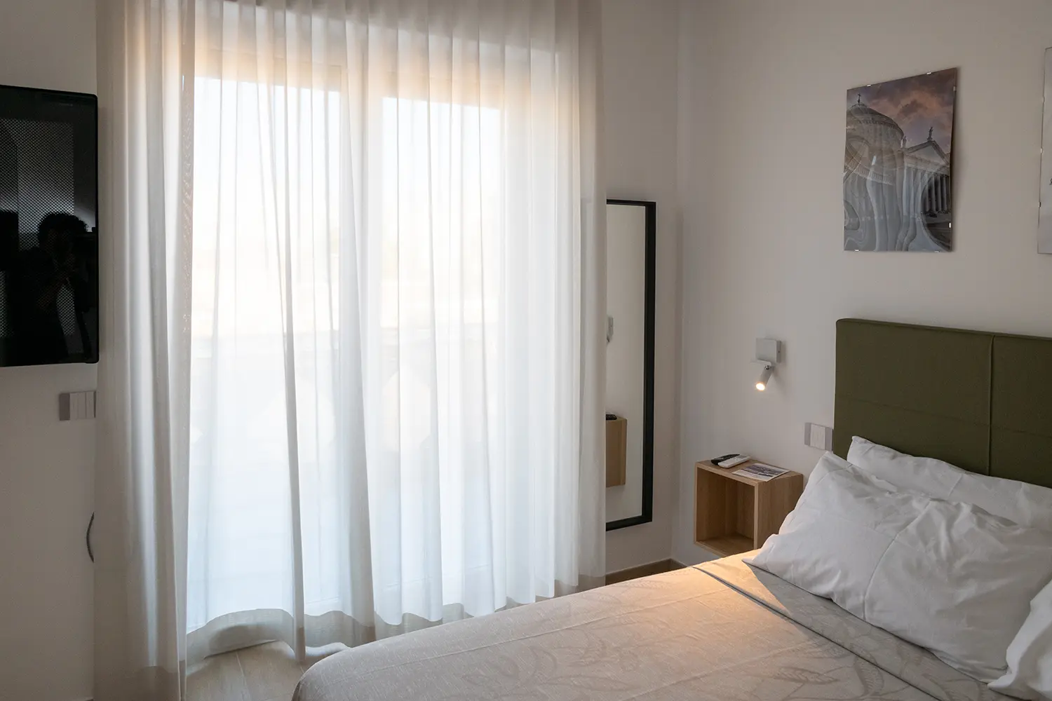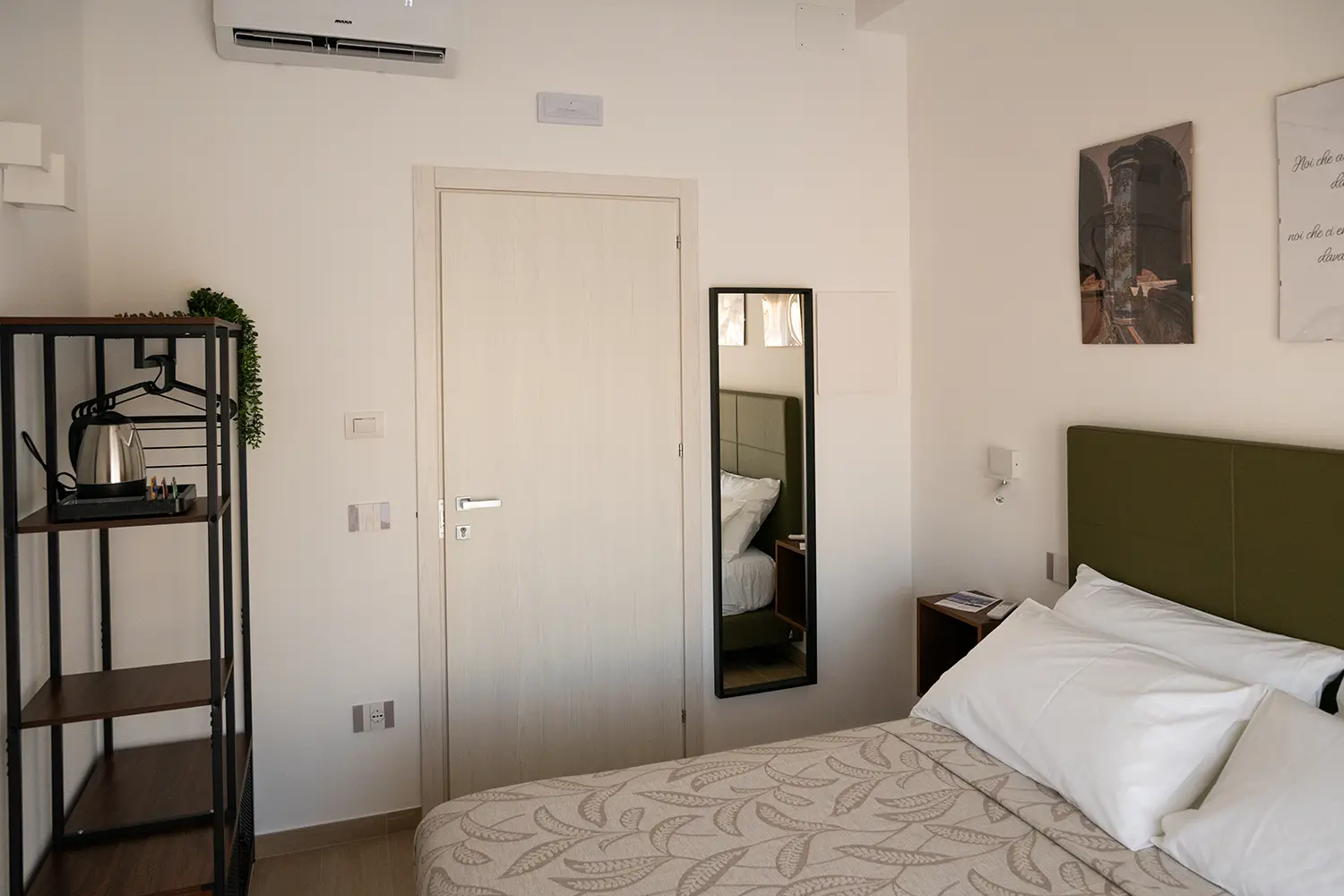 Camera economy, dotata di ogni comfort, letto matrimoniale, tv, condizionatore, bagno privato, frigobar, armadio e bollitore.