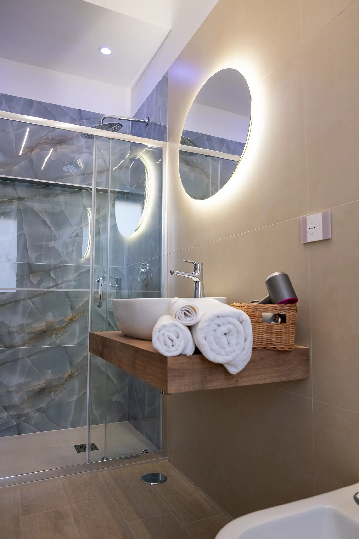Ad accogliervi un ampio ingresso arredato con cura e collegato con la cucina e veranda panoramica. Ciascuna camera è dotata di tutti i comfort, bagno privato e balcone privato che offre una vista sul meraviglioso Golfo di Napoli, che è possibile ammirare anche dal rooftop panoramico, liberamente accessibile ai nostri clienti. La colazione è inclusa ed è preparata ogni mattina con prodotti tipici e genuini e si effettua nella nostra veranda panoramica o sul rooftop.