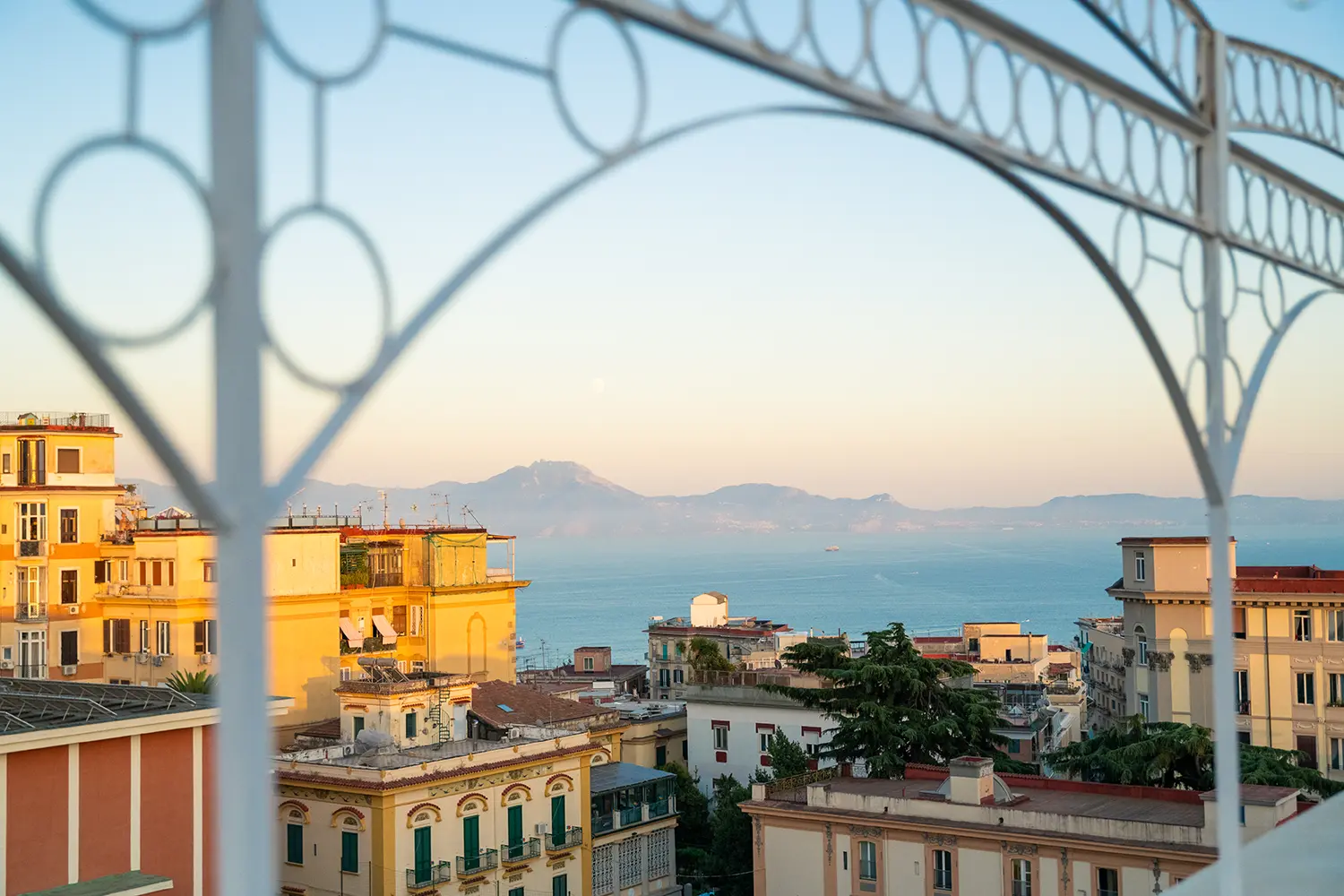 Ad accogliervi un ampio ingresso arredato con cura e collegato con la cucina e veranda panoramica. Ciascuna camera è dotata di tutti i comfort, bagno privato e balcone privato che offre una vista sul meraviglioso Golfo di Napoli, che è possibile ammirare anche dal rooftop panoramico, liberamente accessibile ai nostri clienti. La colazione è inclusa ed è preparata ogni mattina con prodotti tipici e genuini e si effettua nella nostra veranda panoramica o sul rooftop.