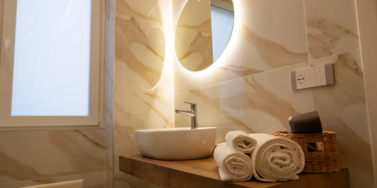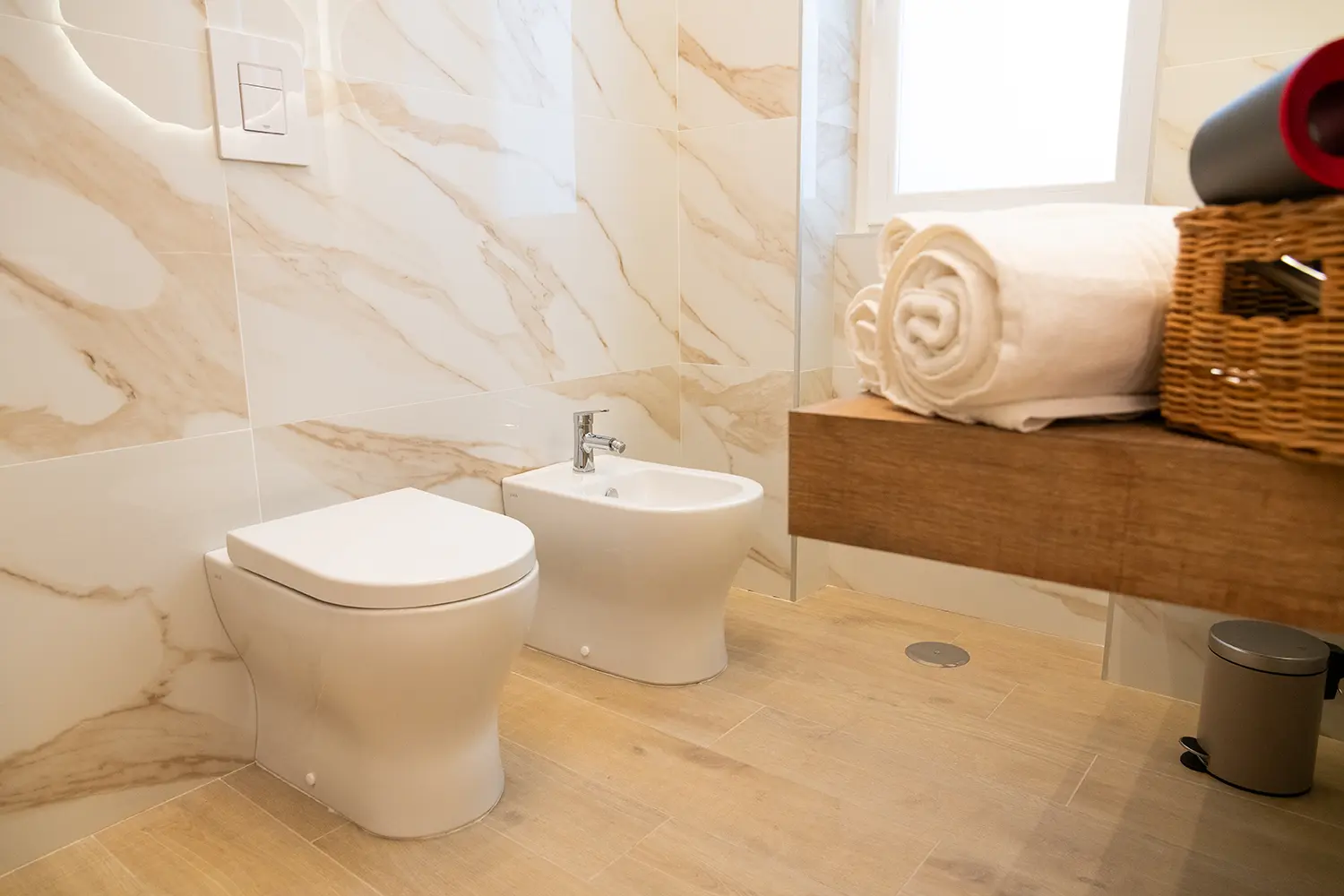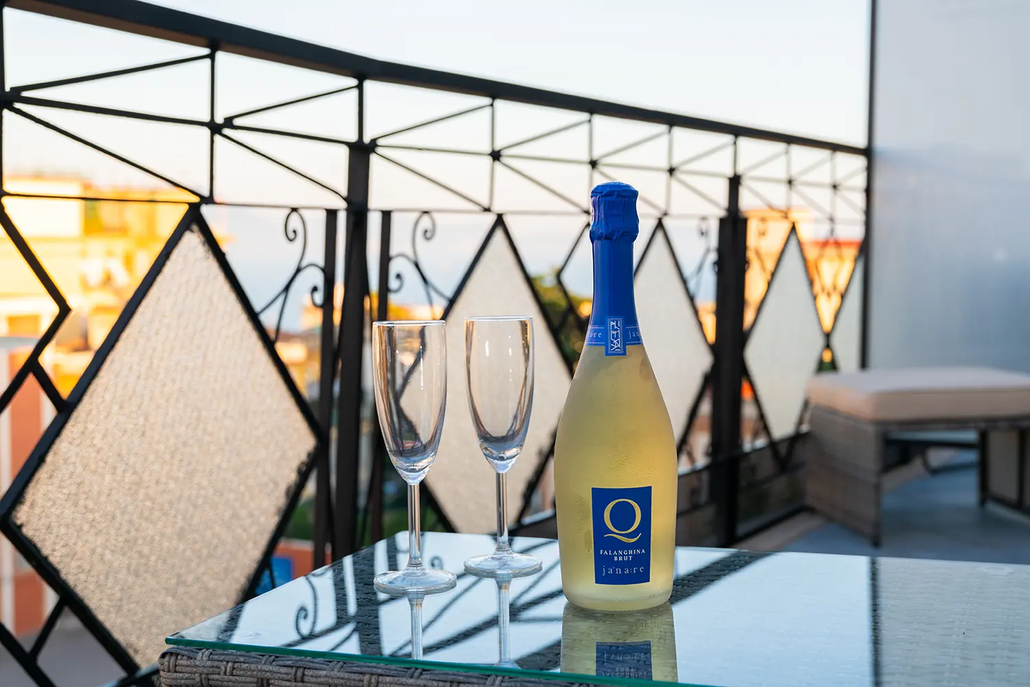 Camera con letto matrimoniale, bagno privato con finestra e balcone privato.